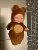 Lovely sleeping child! About 11 cm. Handles-legs bend; the head turns, it is made of soft rubber. Cute fluffy overalls. Brought quickly. Thank you!
